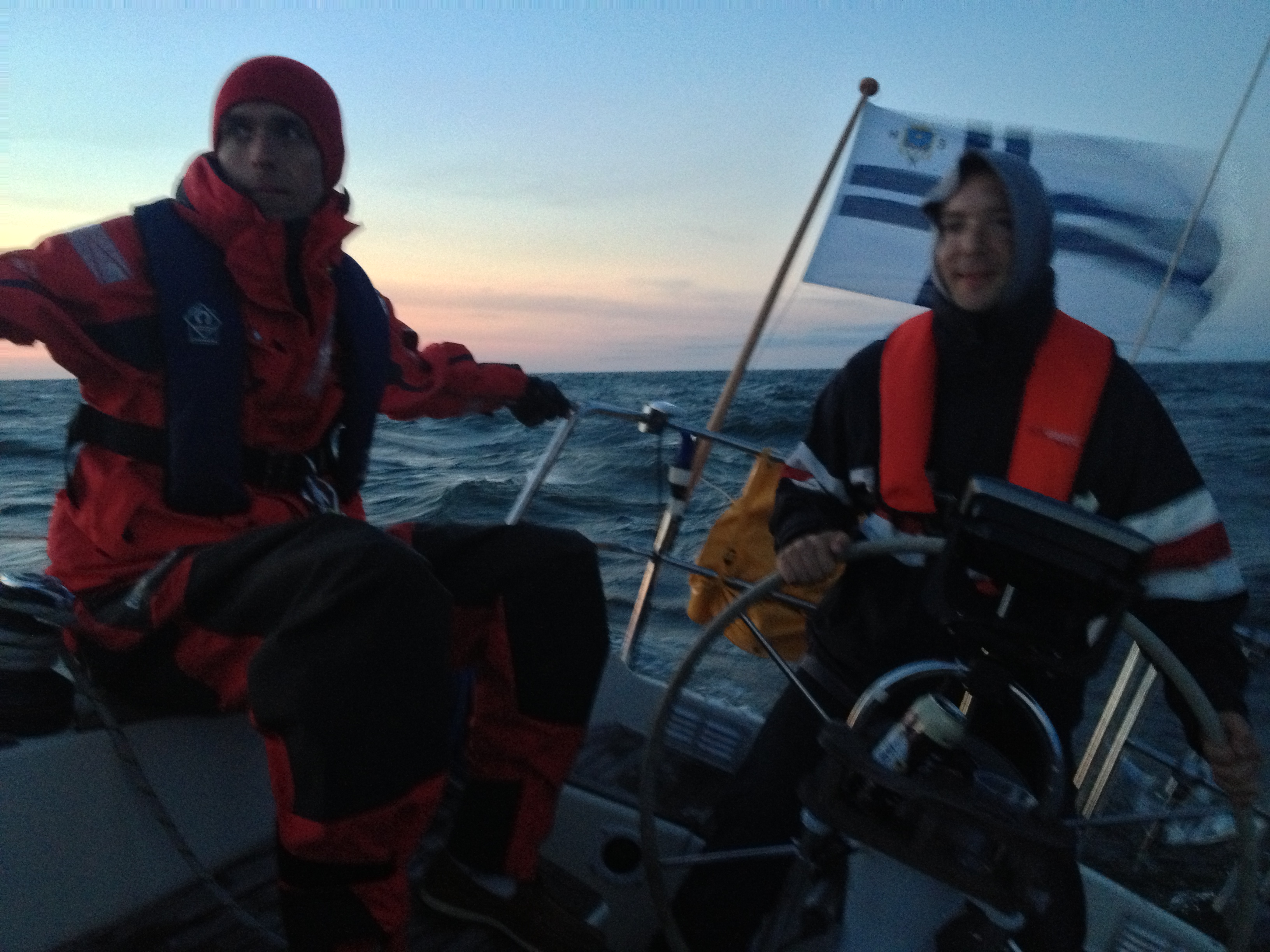 Illan ja yön mittaan tuuli kääntyi hissukseen kohti pohjoista ja puhalsi lopulta jokseenkin puuskaisena 9 – 12 metriä sekunnissa. Edessä vetävä kakkonen oli hieman liikaa, mutta vaihto kolmoseen ei oikein aallokon puolesta pimeässä innostanut, joten powerin hallinnassa tyydytiin twistaamaan. Aallokko olikin tuona yönä erityisen epämiellyttävää Viron matalaa rannikkoa ajaessa. Kahdesta suunnasta, ehkä 40 asteen erolla tulevia aaltoja oli vaikeaa ajaa nätisti. Aaltojen vaiheiden osuessa sopivasti yhteen, niistä muodostui lähinnä pilaria muistuttavia muodostelmia. Osa vatsalaukuista muodosti oksennusta, jota matoonkien välistä pujoteltiin mereen.