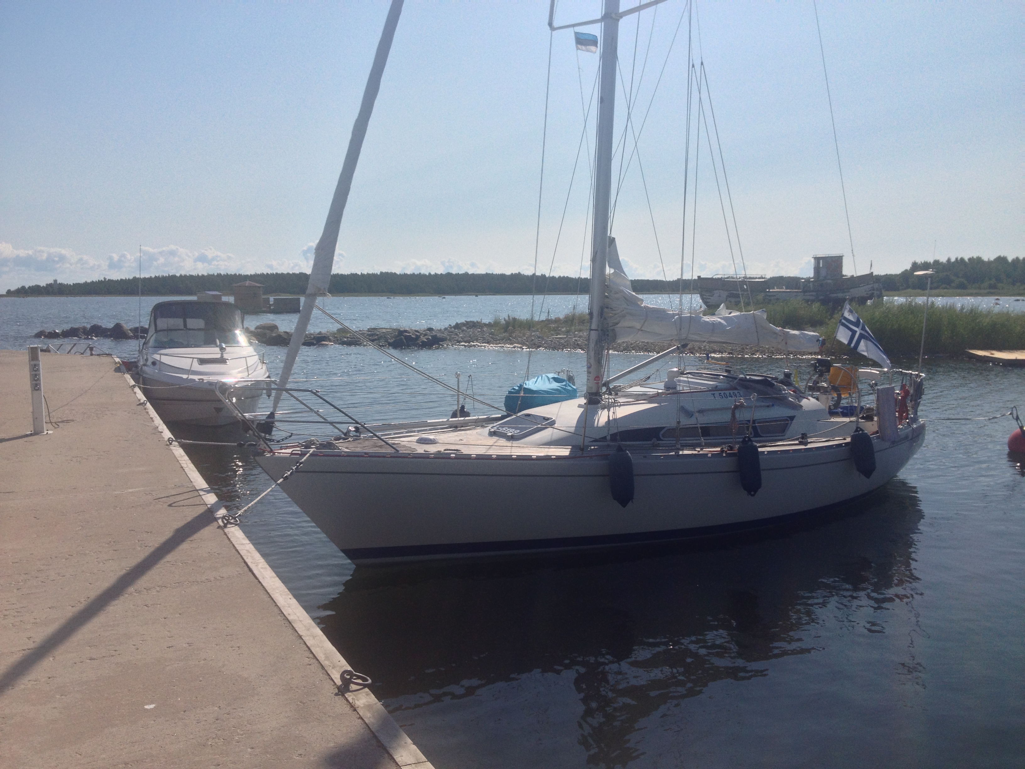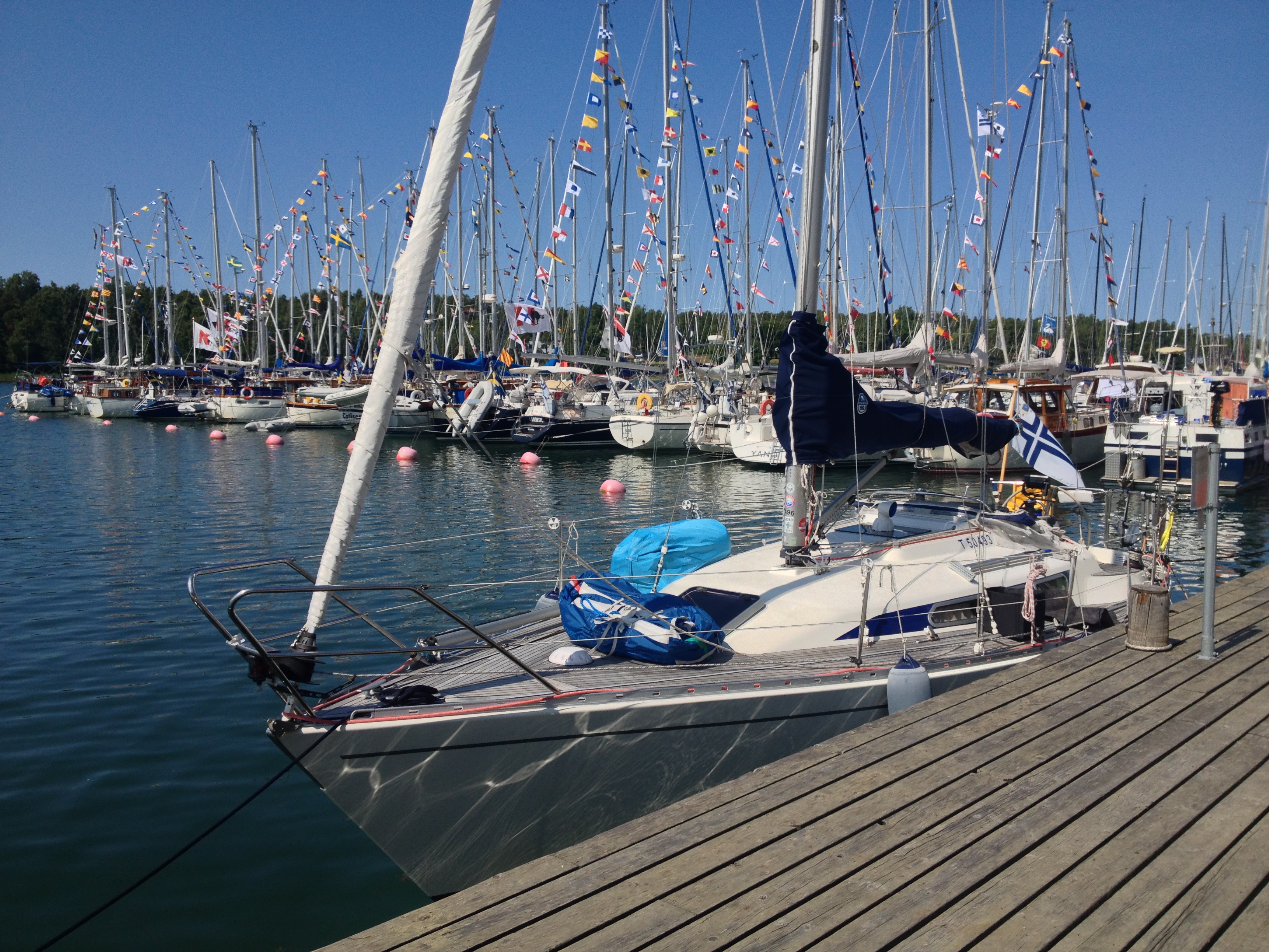 essä pohjoisen suuntaan, päin kolme metriä sekunnissa liikkuvaa ilmaa. Maarianhaminan länsisatamasta olin etukäteen varannut Dockspotilla paikan, johon kiinnityimme kello 12.00.